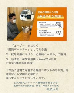 福祉の現場で使えるロボットの開発の試みを、ご一読いただけますと嬉しいです。